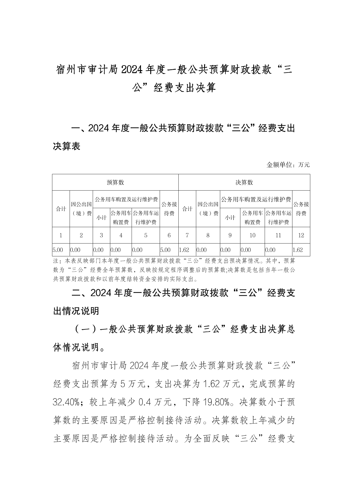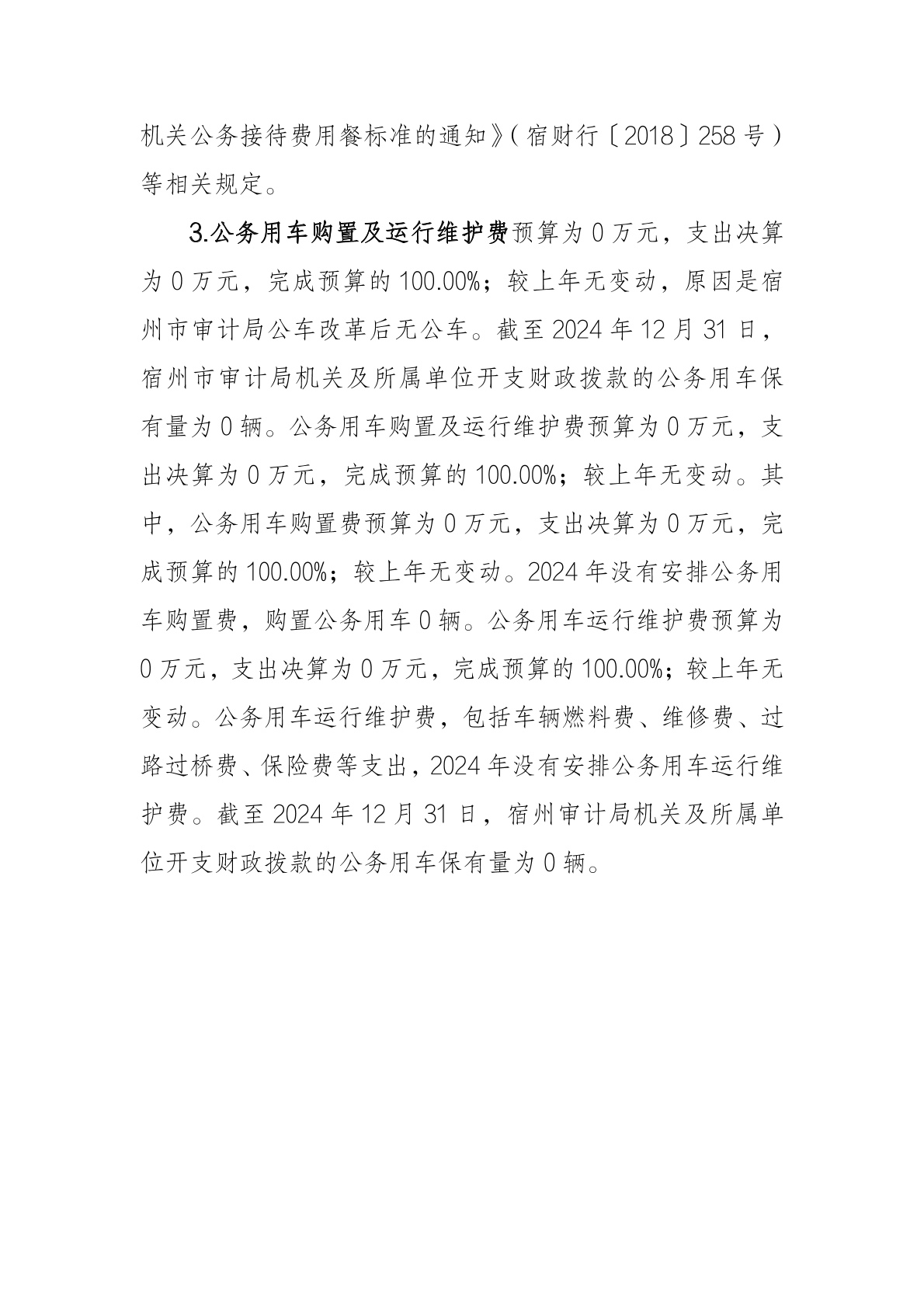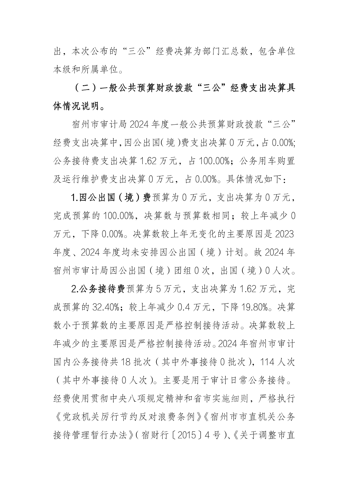 宿州市审计局2024年度一般公共预算财政拨款“三公”经费支出决算 |